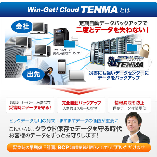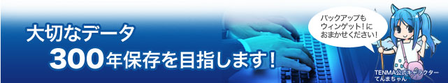 お客様にはウィンゲットの自動バックアップオンラインストレージ「TENMA」のバックアップサービスをご案内し、