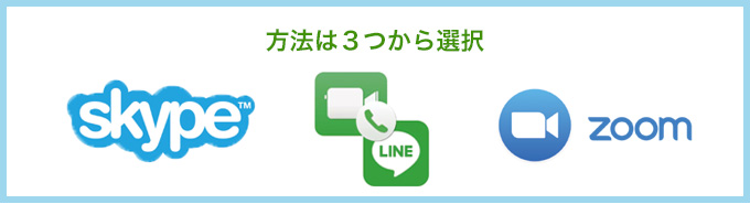 ツールはLINE、Zoom、Skypeの3種類から選択することが可能です。