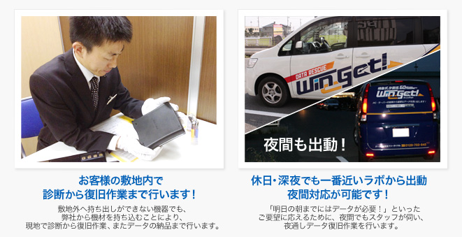 今までに、10,000件を超えるお客様のデータを復旧して参りました。データが戻った瞬間、お客様が本当に安心される場面に、何度もたち合わせていただいております。