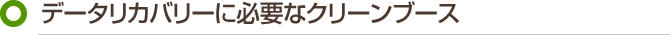 ウィンゲット(WinGet)のオフィスにはクリーンブースを設置し、実際のHDDの復旧作業はブース内のクリーンベンチで行います。設置時の測定ではクラス10以下をマーク、国内最高質のクリーン環境でお客様のデータ復元を100%に近づけます。 |