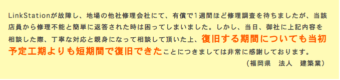 メーカーさんに問い合わせても、LinkStationを東京に送らなければならず、少なくとも1週間はかかるというご返答でした。