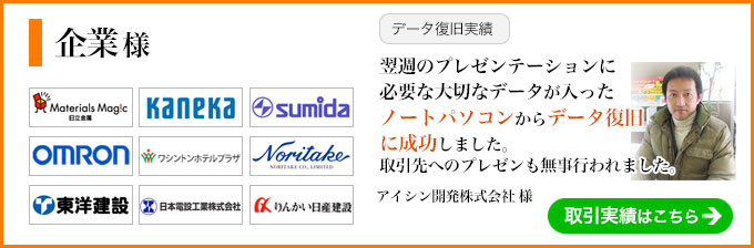 すぐに近くでデータを取り出して頂けるところを探していたところ、御社を見つけました。